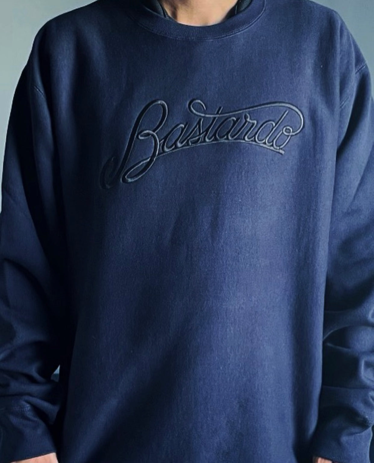 Glorious ‘Bastardo’ black embroidery on our Navy blue crewneck heavyweight 450 gram brushed fleece sweatshirt. The perfect sweatshirt for those subtle Bastardo occasions.
