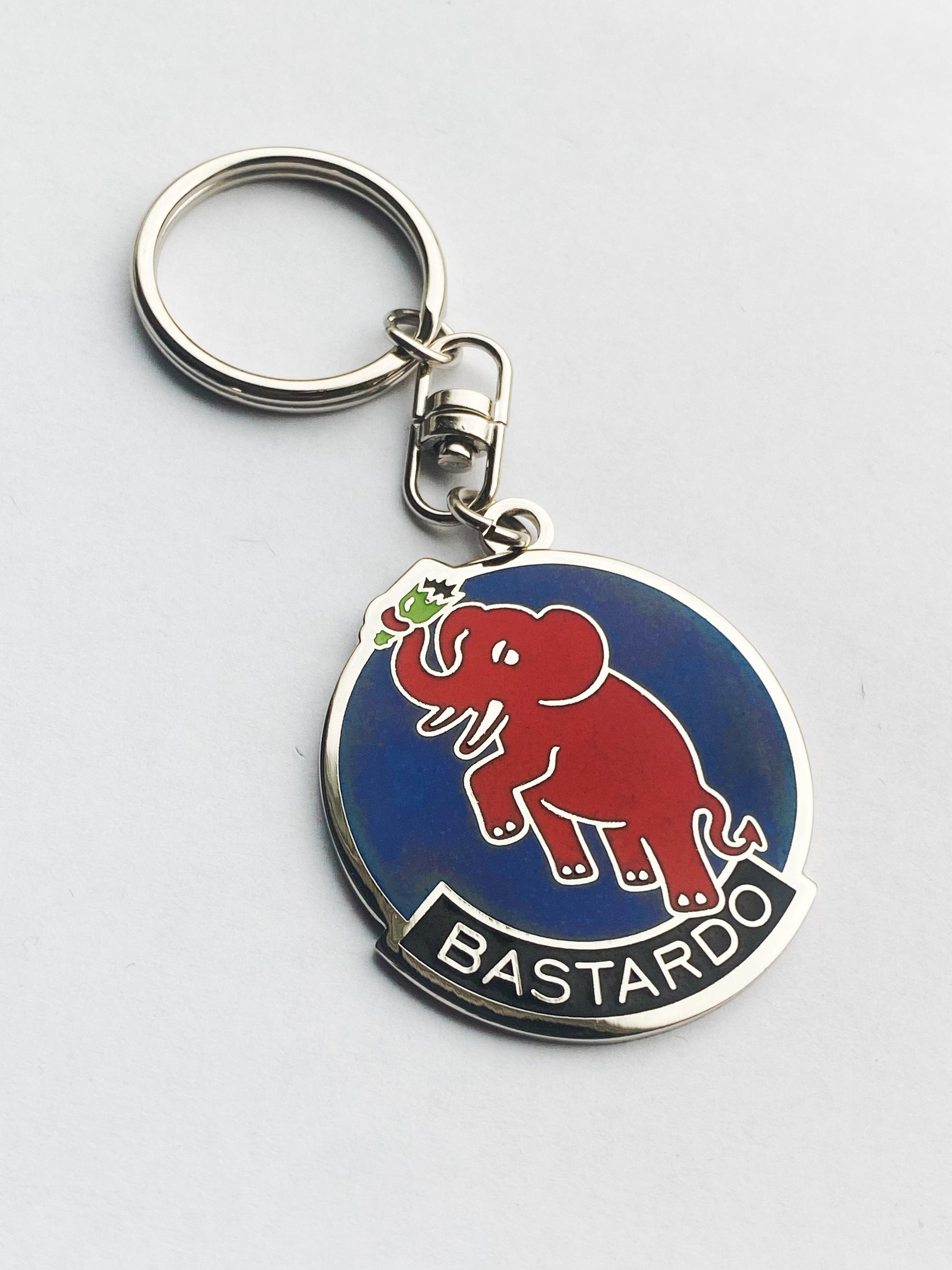 Hard Enamel keychain, 1.5 inches in diameter, featuring the new Bastardo hooligan elephant in black-%67 more menacing! (we ran the numbers)